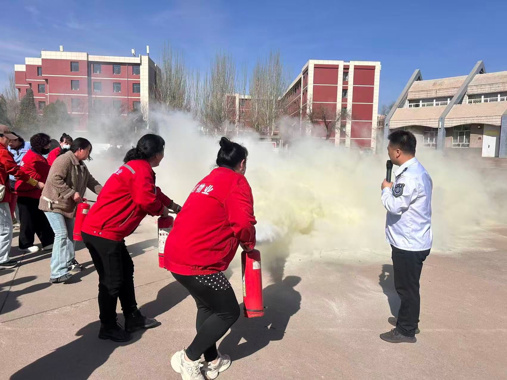 本次培训采用“集中授课+ 现场实操”相结合方式开展。理论环节围绕校园消防安全规章制度、岗位风险点识别、火灾报警规范、疏散逃生技巧及基础消防设施使用等内容展开,针对不同岗位特点进行精准化授课,有效强化了全员安全风险认知。实操环节以灭火器规范使用为重点,进行现场教学与手把手指导,确保参训人员全部熟练掌握操作要领。